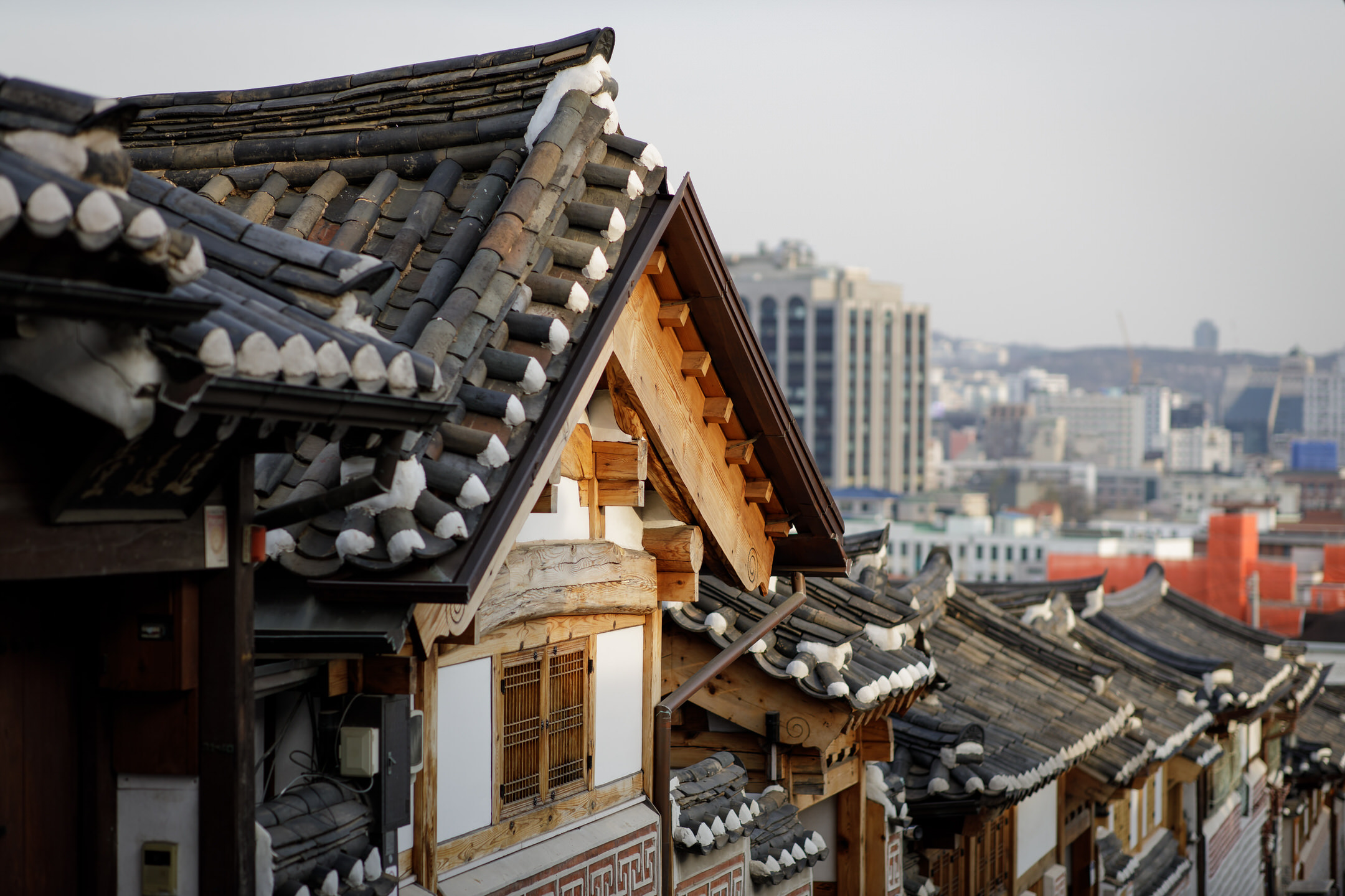 Bukchon, or the “northern village”, is located to the north of Seoul between Gyeongbokgung Palace and Changdeokgung Palace. Its traditional houses are mostly built in a rectangle shape to retain heat in the winter, which is quite cold in this part of South Korea.